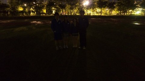 넥라이트를 켜지 않고 찍은 대운동장에 서 있는 저희 K.C.G