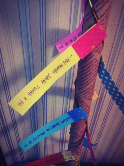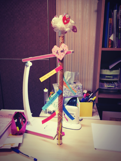그리고 황금빵끈으로 지지대를 돌돌돌 만다음에 편지를 어떡해 하면 좋을까?
