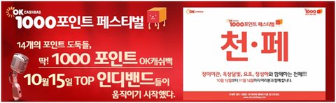 천포인트 페스티벌이라고 OK캐쉬백에서 1000포인트로