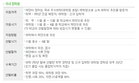 중학생부터 대학원생까지 모두 지원 가능한 장학금이예요.