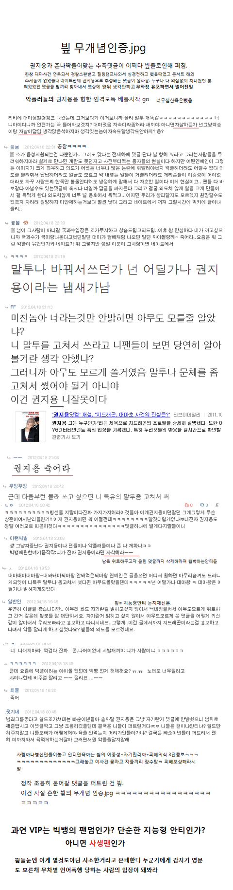 많은사람이보게 추천좀ㄱㄱ 확실히 밝혀지지 않은댓글이니권지용이냐아니냐가 중요한게아니라