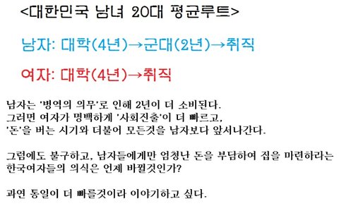 그래서 한국남자로 살아가기 힘든세상이니 능력키워서 밖으로 나가는 수 밖에 없습니다. 저도 술자리 안가고 담배끊으면서 적금 월 270씩 넣으면서 악착같이 돈 모으고 있습니다. 전 일본여성과 결혼을 목표로 하고있습니다. 한국에서 남자는 절대로 토를 달면 안됩니다. 남자가 찌질하게.. 이런소리 정말 듣기 싫어서 꾹 참고 밖으로 나갈랍니다