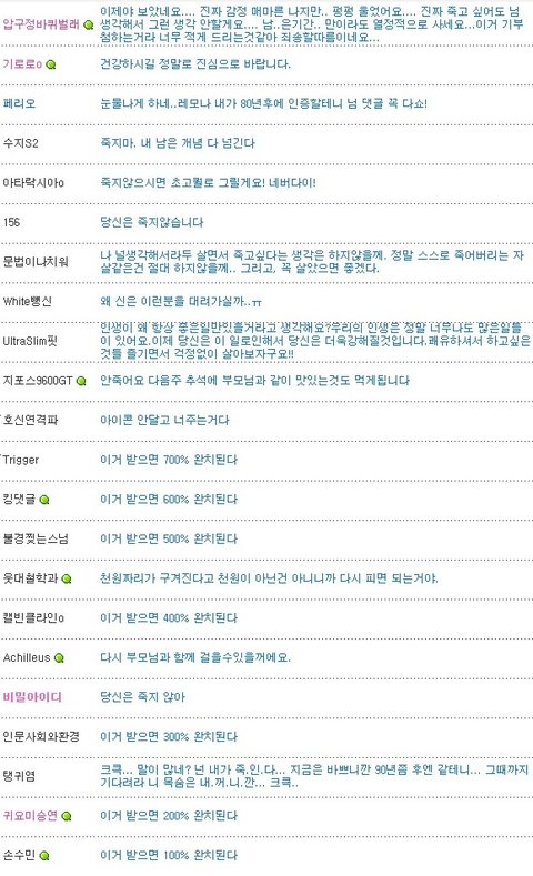 제발... 제발... 형들..누나들.. 제발 부탁이야... 죽고싶다는말... 죽고싶다는 마음.. 그런마음 갖지말아줘..