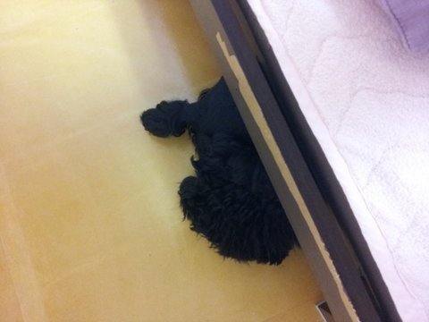 둥이가 뭘 잘못했는지 갑자기 지 혼자 숨더니... 저리 엉덩이만 빼놓고 숨었음...