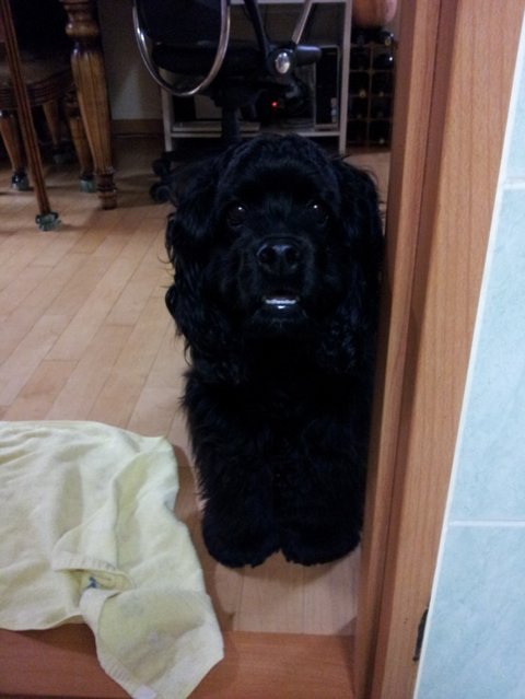 화장실간 누나를 기다리는 개둥....
