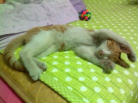 치킨 다 먹고 나니 뜨듯한게 솔솔 잠이 왔다냥