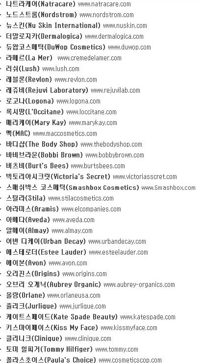 바비브라운, 니베아로션, DHC, 미샤, 쥴리크 (호주브랜드인 유기농 허브 화장품) 등