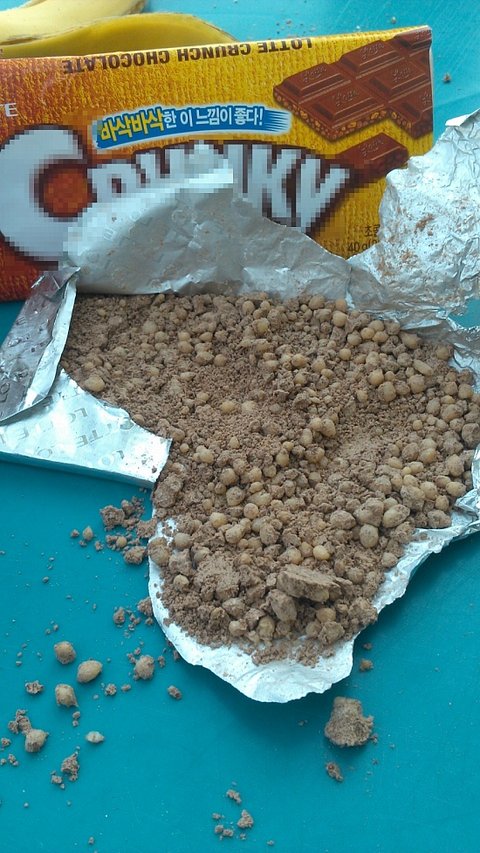 롯*회사의 크런*샀음→ 혹시나 모르는 분을위하여 → 바삭바삭한 뻥살과 부드러운 초콜릿이 잘 조화되어