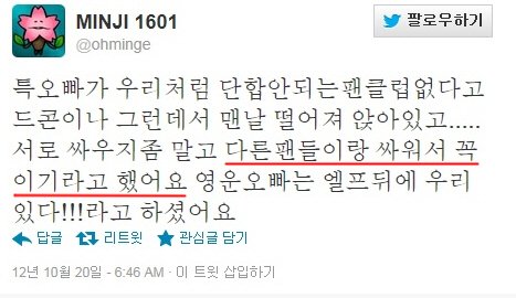 저때 생긴 열등감이랑 피해의식을 아직도 못버려서 다른 슴돌들로 갈아타고도 방탄에 부들대잖아ㅋㅋ 평생 방탄한테 열폭질하는 운명인 불..