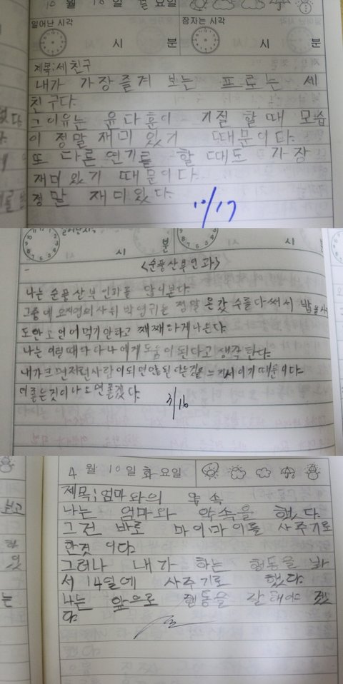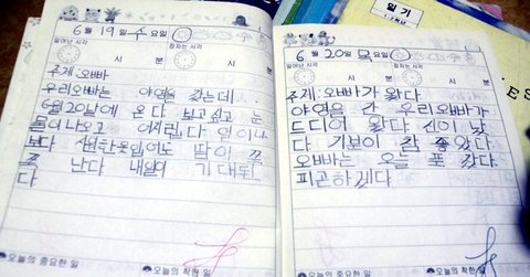 저~~~기 박혀있던 3살 터울인 오빠와 나의 초등학교때 일기장을 발견함.
