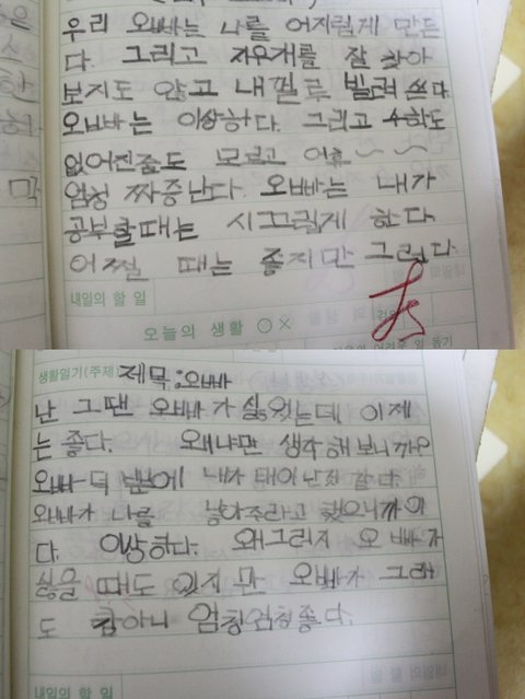 오빠의 일기장을 보니 오빠 일기의 소재는 내가 대부분인걸 앎.