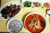 * 된장찌개와 등심, 콩나물 비빔밥과 어묵국