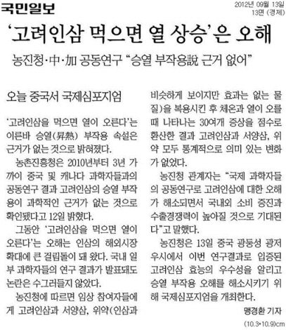 ‘인삼/홍삼 먹으면 열이 오른다'