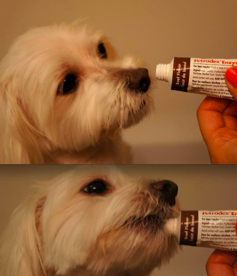 항상 졸라요.. "엄마!! 나두!! " 아무래두 강아지 치약이래서 (닭고기 맛이 나서 좋아하는거같에요)
