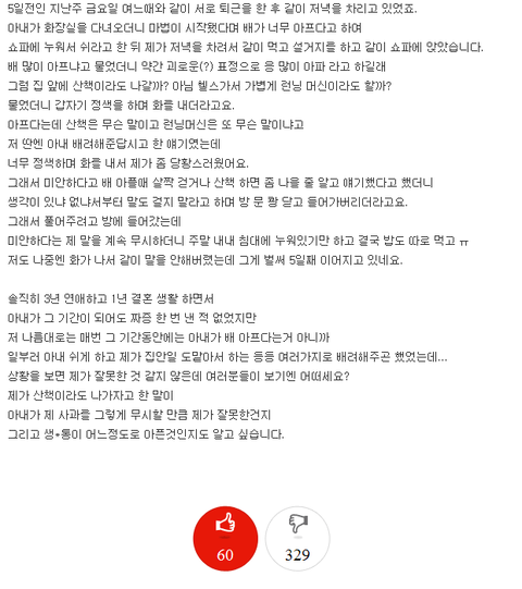 남자는 분명히 여자 배려 해 주려고 산책이나 조깅 나갈까 라고 말했음.