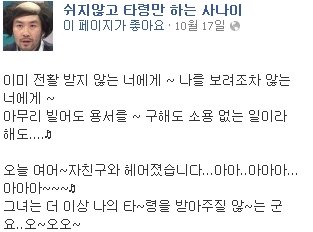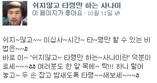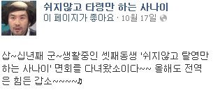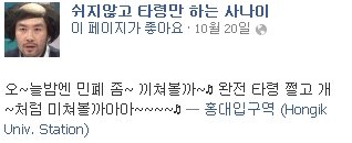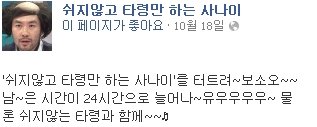 이 와중에 눈에 띄는 ' 쉬지않고 타령만 하는 사나이 ' 페이스북 페이지.