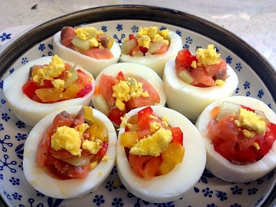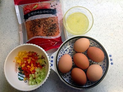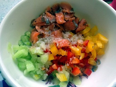 다진 파프리카, 다진 오이, 다진 연어, 삶은계란