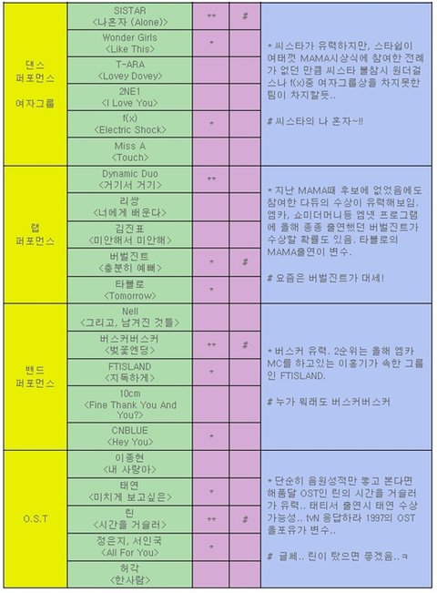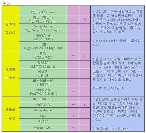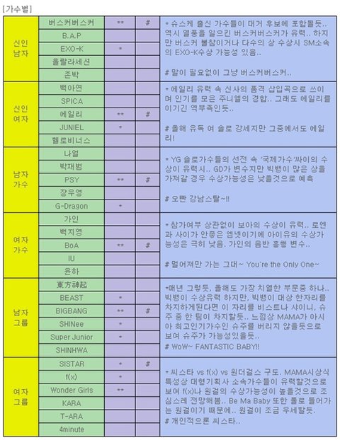 이건 올해 MAMA 수상 예측인데