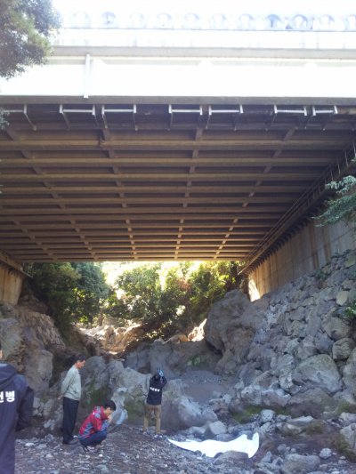 진열되 있었습니다..시신이 있던곳은 아래사진처럼 돌들이 많은 다리밑이었습니다.