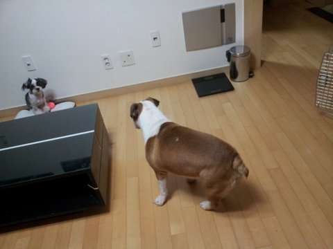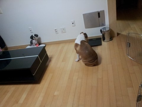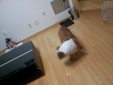 20여분 소리없는 전쟁끝에 글쓴이의 도움으로 땅이는 럭비공을 얻게됨 ㅋㅋ