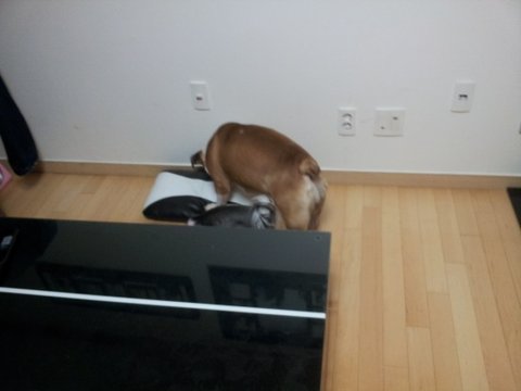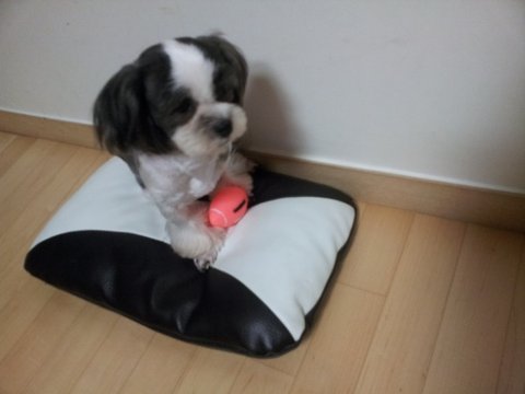 땅이가 방석에 달린 지퍼를 뜯어내고 그사이에 들어가서 코를 골며 자고있었음;;;