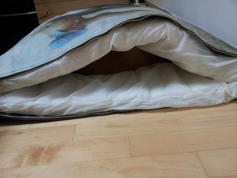 정말 단순무식하게 지퍼를 뜯어내고 사차원적으로 방석안에서 잠을청함...