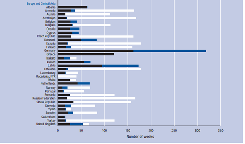 보고서 62~72p에 나와있는 전체 표를 보면, 대부분의 국가가 여성에게 12주~20주 사이의 출산기간이 주어지고, 20주 이상의 기간이 주어지는 상위권 국가들도 여럿 있다. 이게 과연 한국 여성들이 출산에 대해 선진국급 대우를 받고 있다고 말할 수 있나?