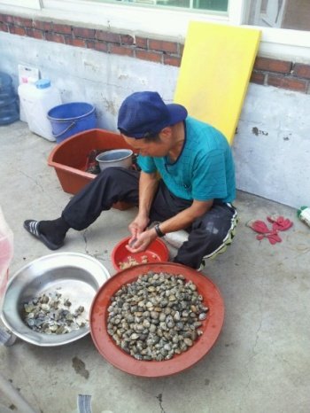 울아빠가 직접 잡으신 바지락 까시는중~~