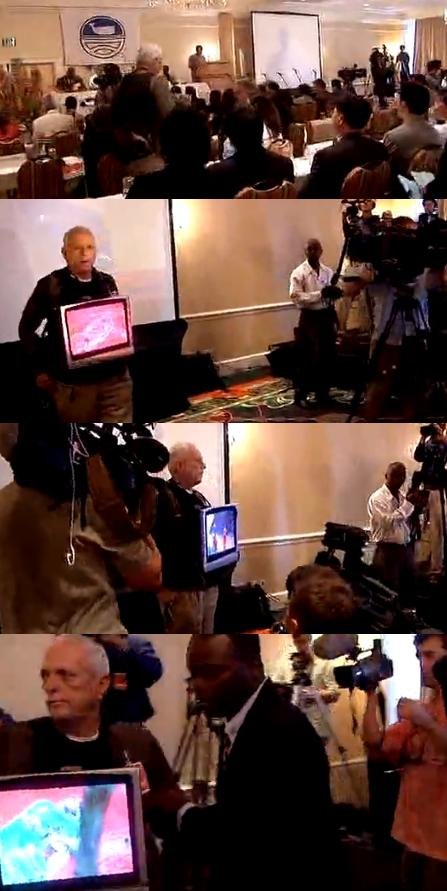 첫번째사진에 든것은 꼬챙이같은데 찍지말라며 위협을 하고, 방송사들을 위협하며,