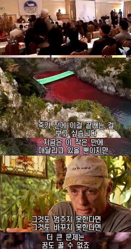 저렇게 긴 작살? 같은걸로 돌고래들은 찔러서 바닷물이 핏빛으로 변함