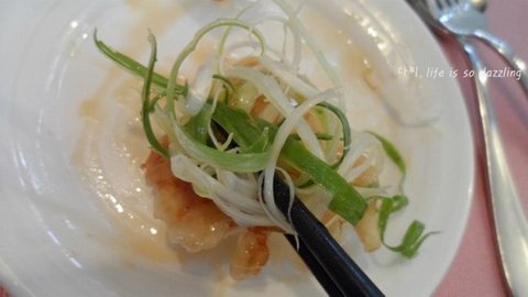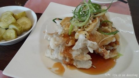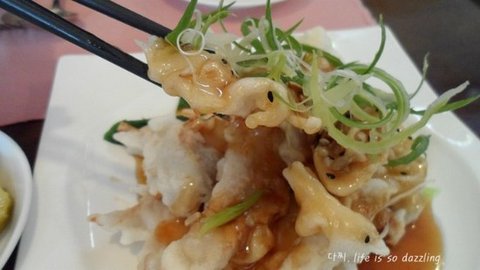 이렇게 파채랑 듬뿍 집어서 먹으면 !!!!!!! 한입 먹고 완전 놀랬어요