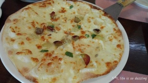 훠바로우를 먹기 시작하니까 나온 포도피자(16.000)