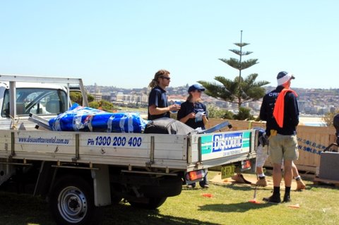 POOM이 설치될 장소 TAMARAMA 비치로 옮기기 위해 운반하는 모습입니다.