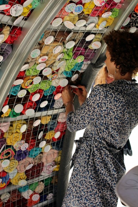 무지 뱃지에 희망의 메시지를 적는 것입니다!