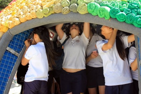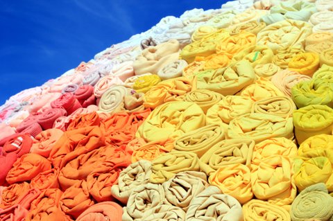 옷들을 돌돌 말아 색깔분류한 뒤에 뼈대에 껴 넣는 형식으로 제작 되었습니다.