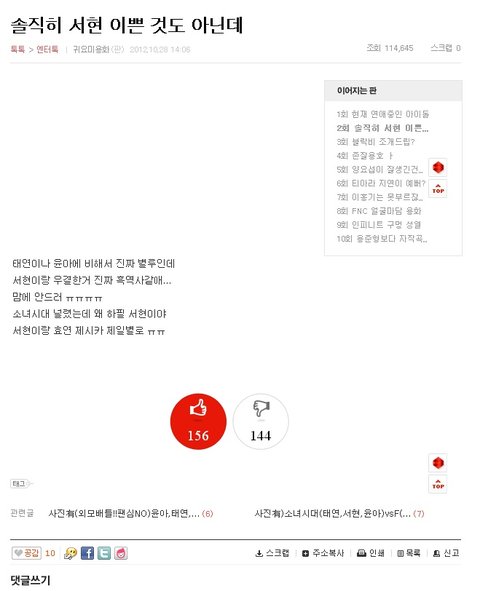 소녀시대 서현이 못생겼다고 하며,