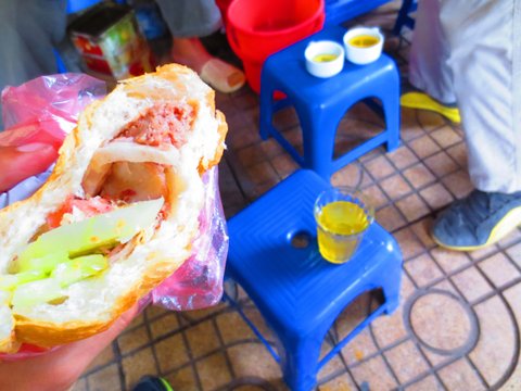 바게뜨 빵 안에 각종 야채와 고기를 넣어서 맛나게 팔음 ㅋㅋ