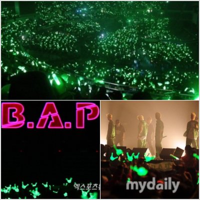 ↑ 위에 응원봉이 B.A.P분들의 응원봉 컬러:펄스프링그린