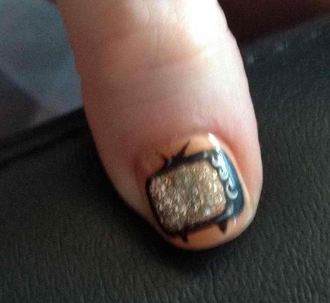 그냥 TV 네일이어도 신기한데, TV 브라운관은 금펄이 들어간 네일을 사용해서