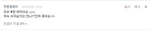 재밌으시다니 다행이네요ㅠㅠ 감사합니다 푸른곰팡이님♥ 열씸히 하겠습니당!!
