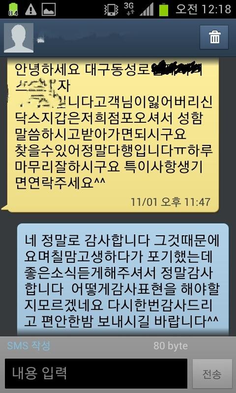 직접 쓰레기통까지 뒤지고선 오히려 못찾아서 죄송하다는 마음씨에 감탄했습니다.