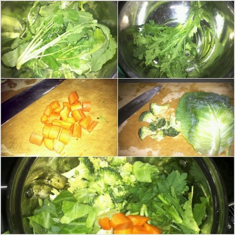 시장에서 산 브로컬리와 당근, 쑥갓 최대한 잘게 잘게 썰고