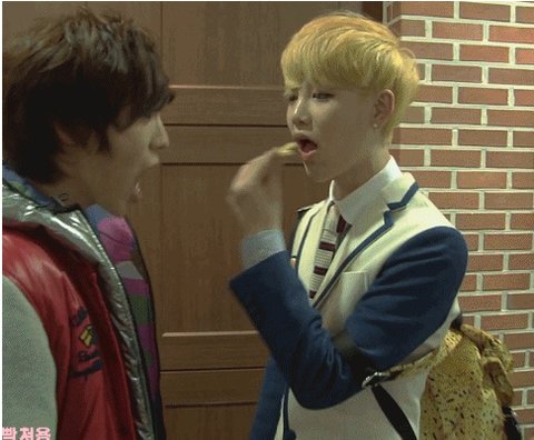 먹다가 만 과자 힘찬이 입에 가져다 줌.