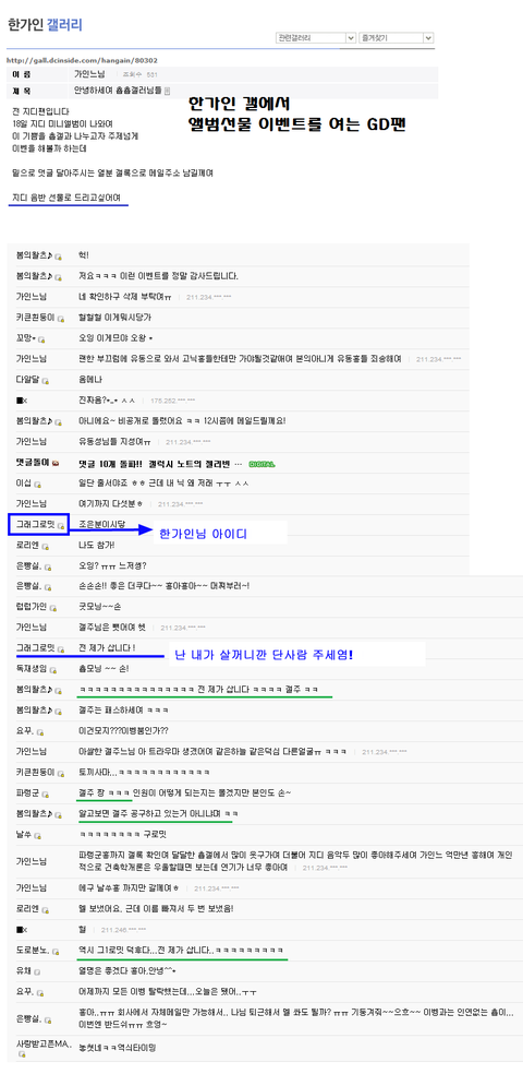 +) 지디갤도 인정한 가인느 팬심 ( 가인느가 지드래곤 좋다고 언급한 영상에 달린 댓글)