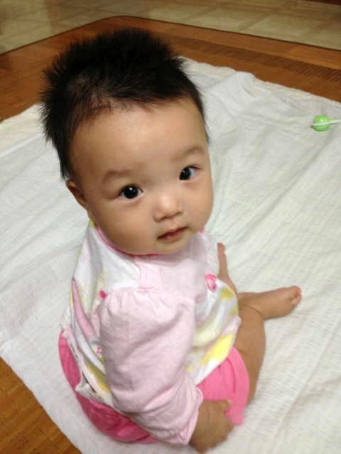 음 요사진은 아직 머리를 밀고 다시 솜털처럼 자라고 있는 시기예요. 혼자 앉아서 뒤를 살짝 돌아봐주는 센스!
