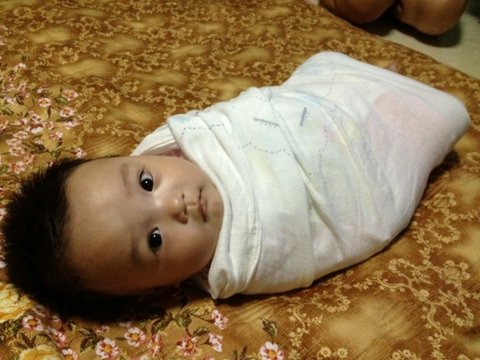 신생아로 다시 돌아간 보윤이? ㅋㅋ 친구가 포대기로 감싸 놓 았네요. 포대기 싸기엔 너무 커버린듯한