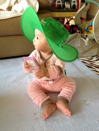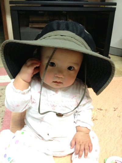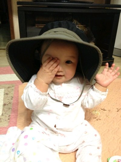 외할아버지 등산 모자를 써본 보윤이! 눈을 가리고 살짝 ㅋ