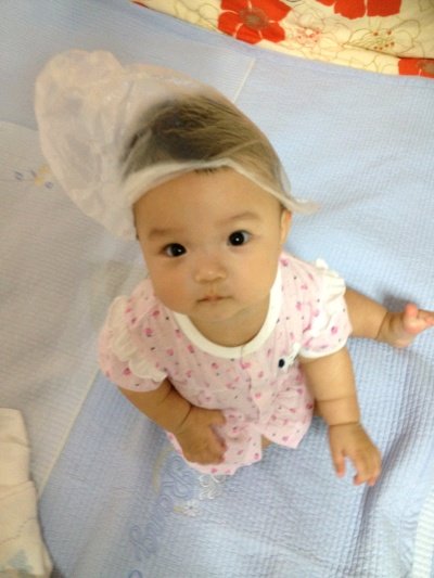 비닐봉지의 바스락 소리를 좋아하는 보윤! 어느새 머리에 비닐모자를 썼네요! ㅋㅋ