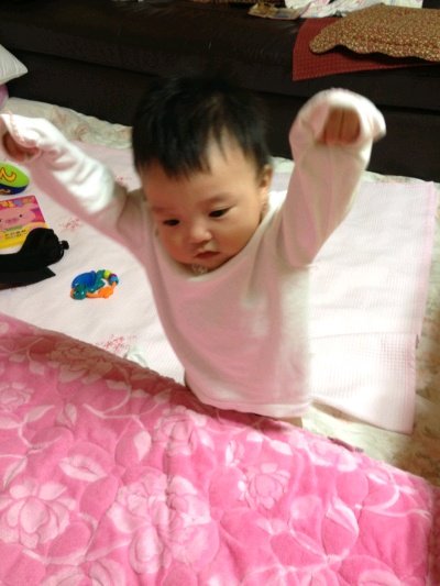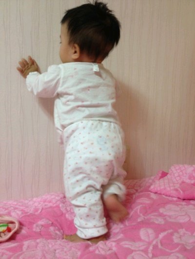 8개월도 안된 보윤이가 다리힘이 좋은지 벽을 잡고 서기 시작했어요!