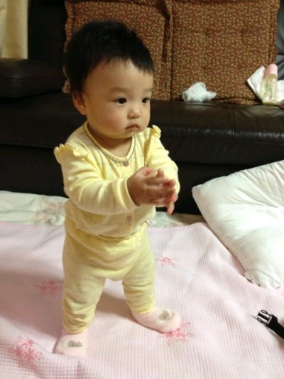 그러던 어느날! 8개월 되기도 전에 혼자 몇초간 서는 보윤이! 얼마나 감동했는지~ ㅋㅋ